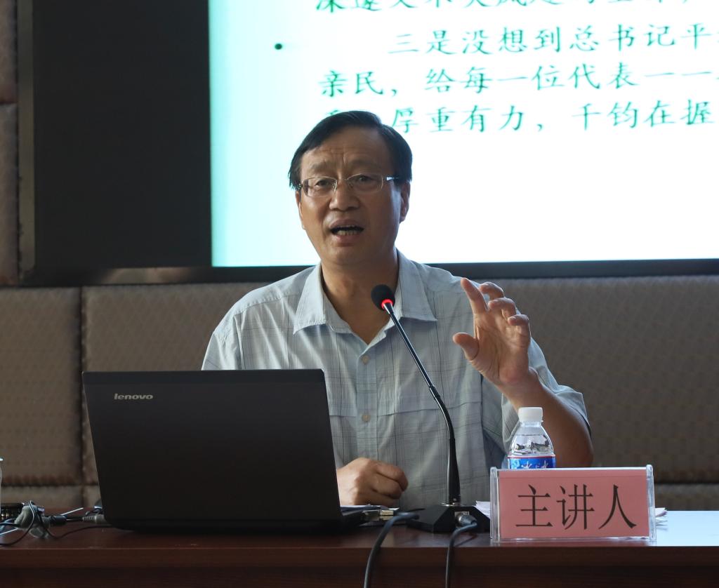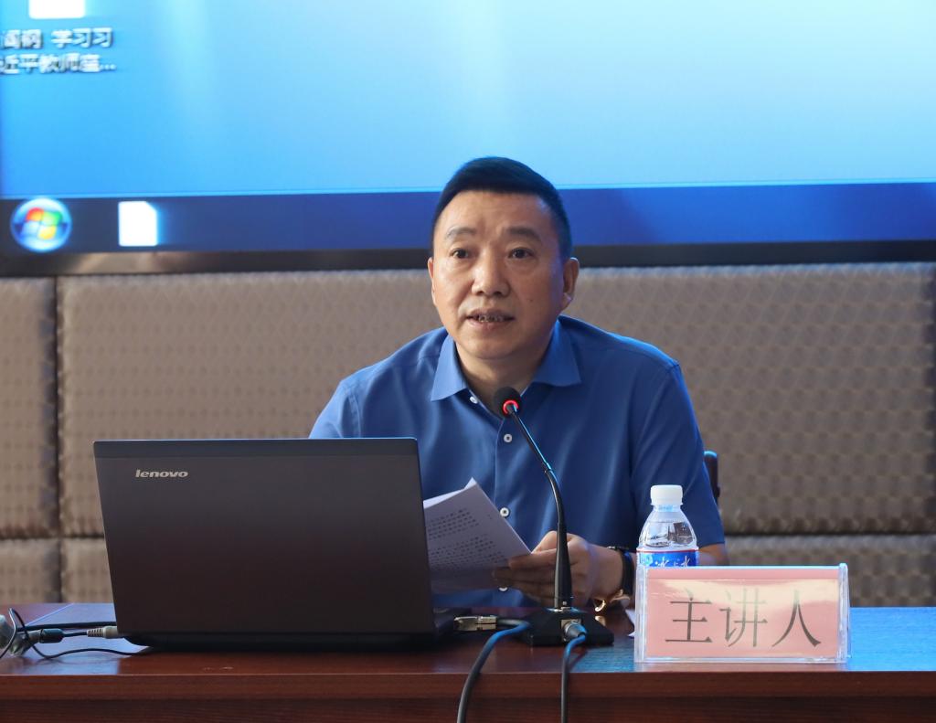 在第一阶段中,会议特邀四川大学教授、四川省理论宣讲报告“人才库”主讲教授阎钢教授作题为“千钧在握,任重道远——学习习近平全国学校思政课教师座谈会讲话精神”的报告。阎钢教授结合参加全国学校思政课教师座谈会的感受与体会,从“聆听总书记讲话,一生平凡,真的值了”、“学习总书记讲话,千钧在握,任重道远”两方面,从多个细节讲述了习近平总书记对思政课教师的亲切关怀,强调思政课教师要在“六个要"和"八个统一"方面下功夫,用习近平新时代中国特色社会主义思想铸魂育人,实现中华民族伟大复兴。