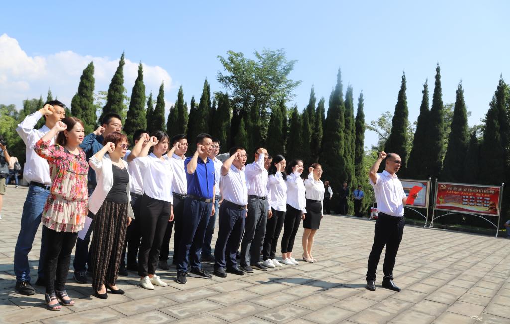 大家首先瞻仰了攀枝花英雄纪念碑,在纪念碑前缅怀先烈们的丰功伟绩,学习先烈们艰苦创业、无私奉献、团结协作、勇于创新的精神。接着全体党员在支部书记李东的带领下,在纪念碑前,面对鲜红的党旗,重温入党誓词,表达对党的忠诚和对祖国的热爱。宣誓结束后,校党委副书记胥刚指出,要铭记历史、牢记先辈们的功绩和奉献精神,尊重英雄,学习英雄,珍惜当下来之不易的幸福生活,为党和人民的教育贡献力量。