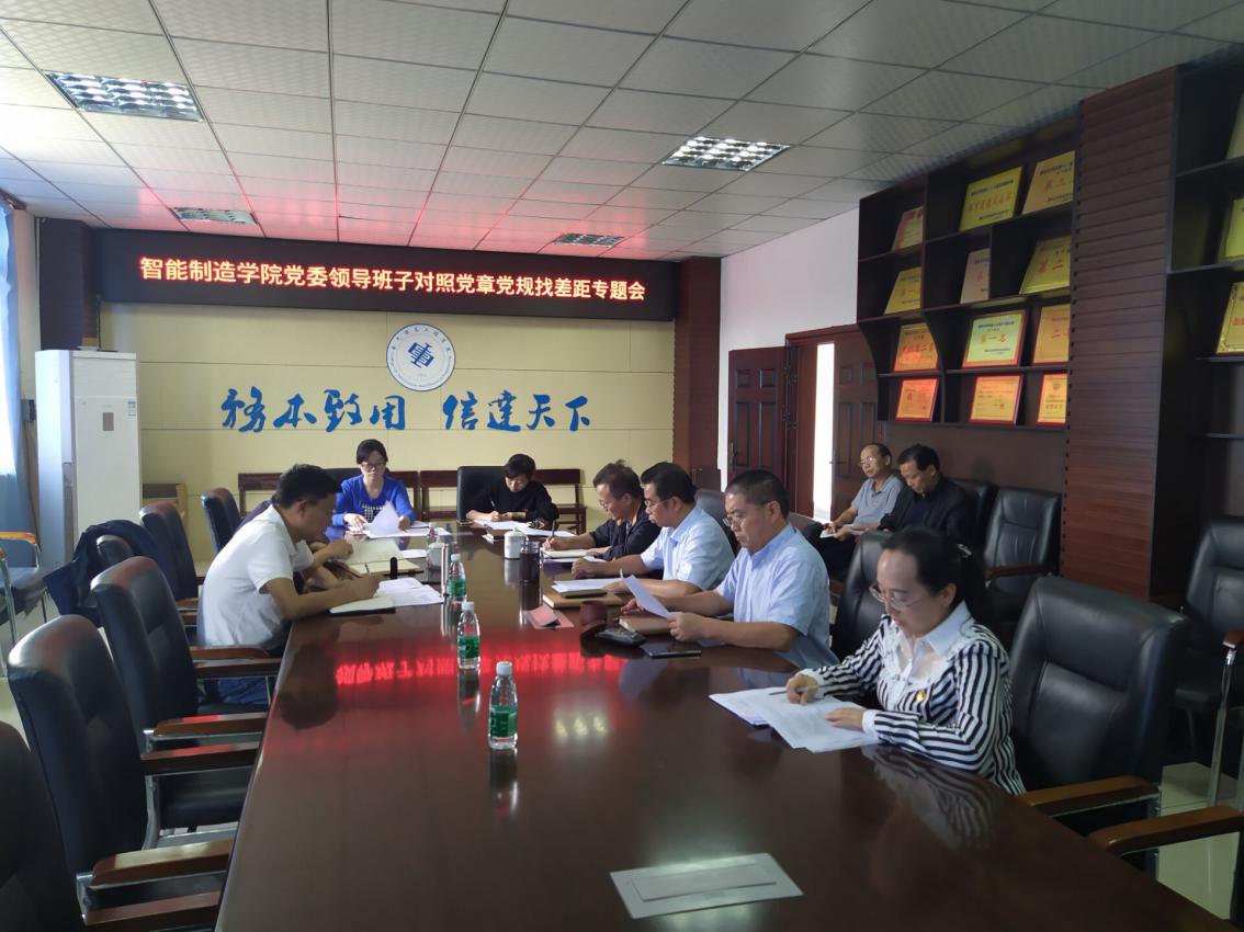 10月18日下午,智能制造学院在学院会议室召开“不忘初心、牢记使命”主题教育对照党章党规找差距专题会。学院党委班子成员参会,纪委委员、教学科老师列席会议。学校党委第五指导组组长、副校长刘立新到会指导。学院党委书记许开华主持会议。
