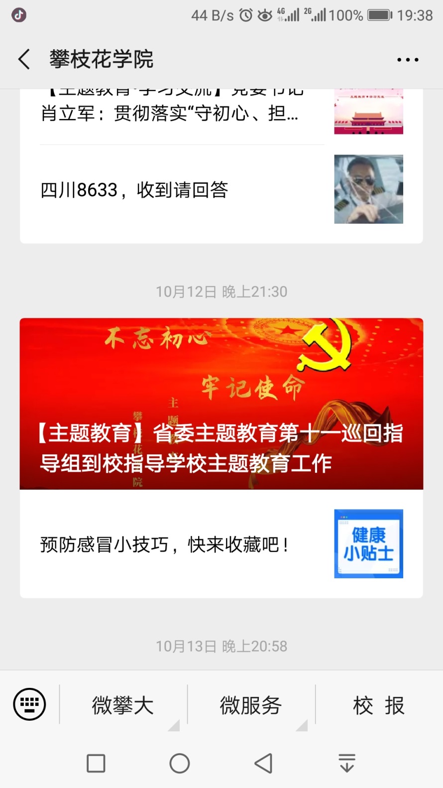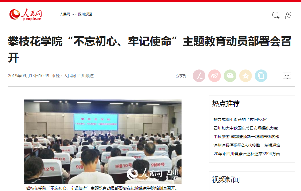 针对主题教育宣传力度不够、舆论引导不足的问题,部门及时将主题教育专题网站的图片设置到主页上,让师生方便快捷的了解相关信息。在校园官方微信设置了主题教育专题模块,及时跟进报道学校主题教育活动开展情况及取得的实效,不定期的发布学习交流文章。在主题教育网站开辟了《身边的初心使命》,对学校的先进典型进行宣传报道。9月《攀枝花学院报》出版主题教育特刊,对学校主题教育进行全面深入的报道。组织传媒中心骨干学生参与新闻宣传组工作,及时处理、发布二级党组织的主题教育新闻、参加先进典型的采写报道。目前,在校园网、主题网、新媒体平台和《人民网》、《四川新闻网》、《中国高校之窗》,《高教信息》等发布新闻96条。